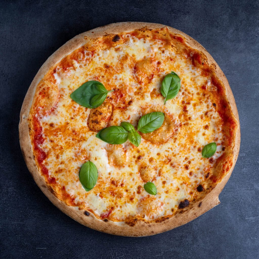 paradajkový základ, syr Mozzarella, bazalka